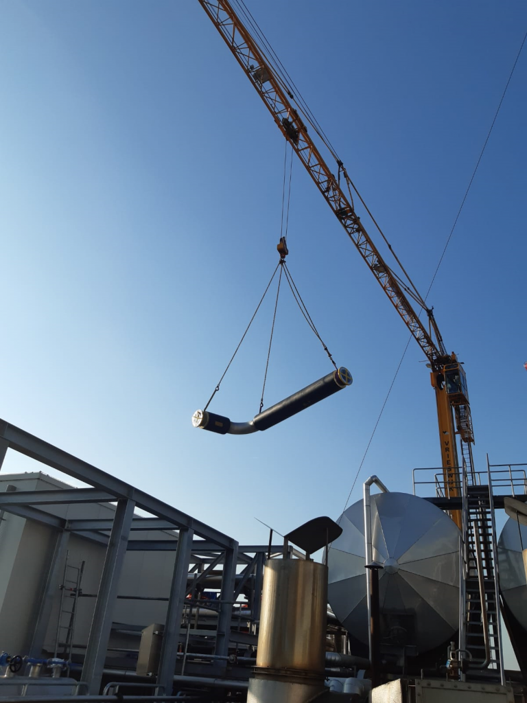 Piping is lifted at a dairy factory on this sunny Wednesday. Within this factory, we are installing a pipe bridge for an Ice water installation. The mechanics of Lasmotec go…