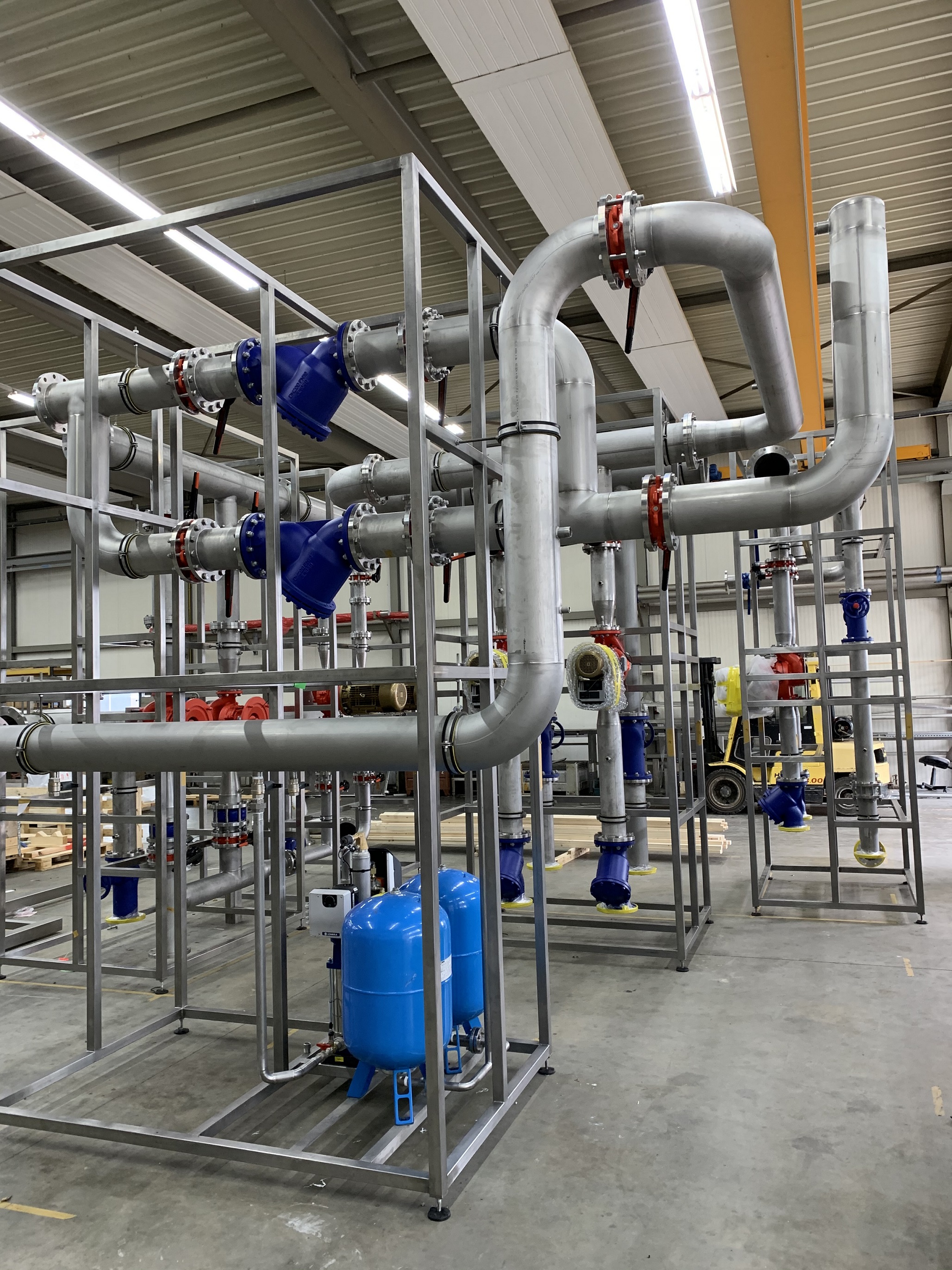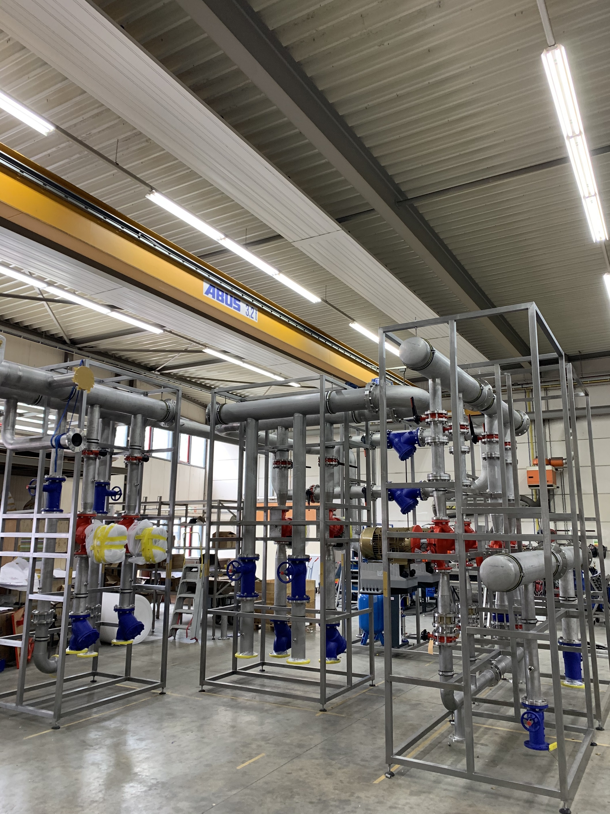 Op locatie wordt op dit moment het verbindende leidingwerk ingemeten, getekend, gefabriceerd. Dit gebeurt gedeeltelijk in werkplaats van Lasmotec en op locatie.