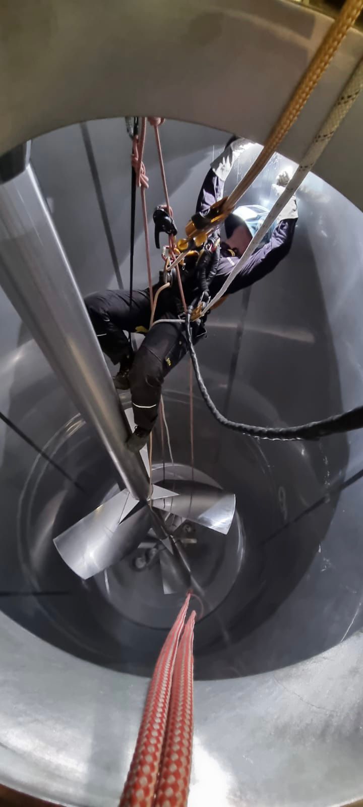 Kijk eens wat een plaatje, Marleen Oedzes hangt vandaag in de touwen om tank reparaties uit te voeren, well done!